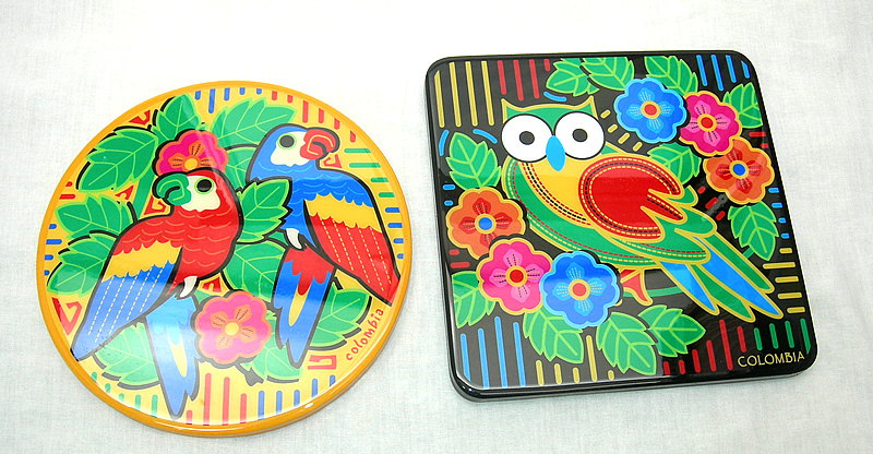 In wood decorated with molas, round and square 19x19 cm